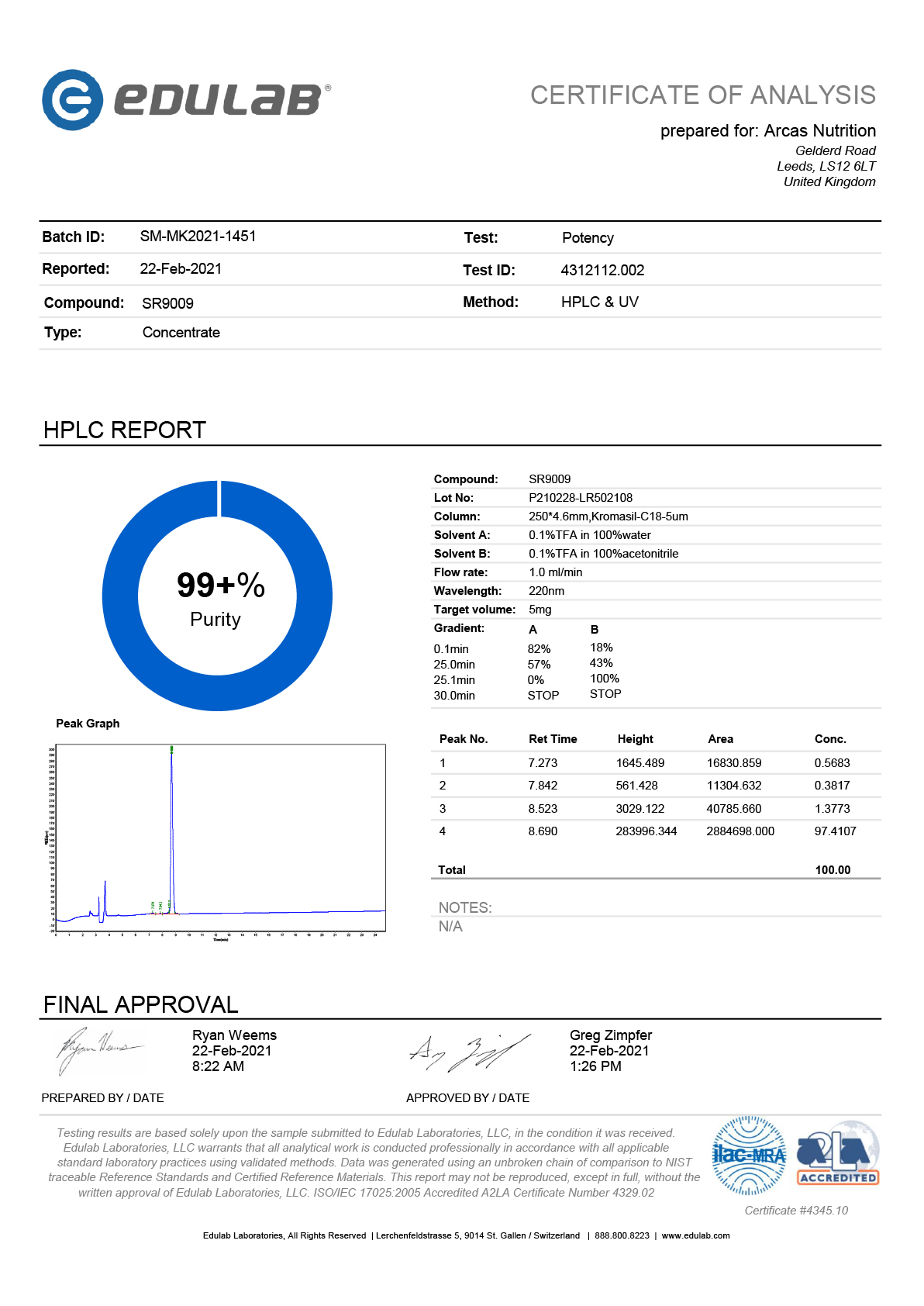 Le ricerche fino ad ora hanno dimostrato che SR9009 è sicuro al 100% per l’ingestione. Questo dovrebbe tranquillizzarvi riguardo al suo utilizzo.